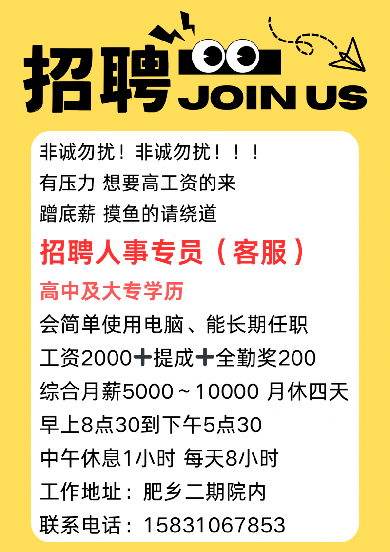 招聘:客服10名,能长期任职 工作简单,会简单操作电脑就行,待遇:月薪2000+提成,综合4000左右, 每天工作8小时 8:3012:00 1