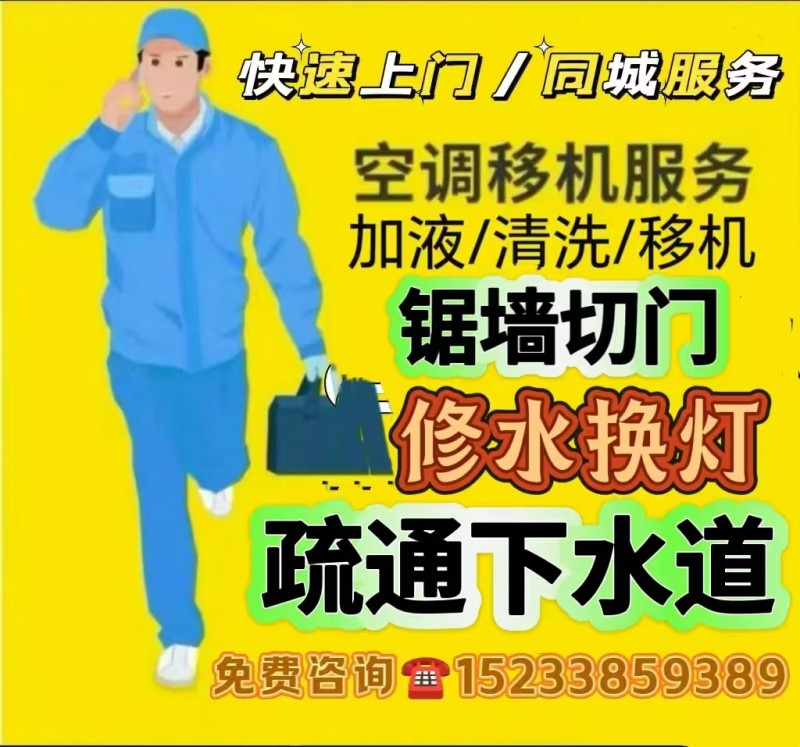 专业疏通下水道/地漏/洗碗池/修马桶/空调移机/清洗空调/安装油烟机钻孔/修水电/免费咨询