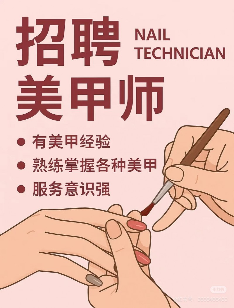 招聘美容师,美甲师,能直接上手的不要二把刀,会做各种款的,工资底薪➕提成或分成都可