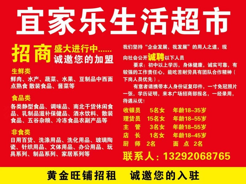 招聘!招聘 理货员15名要求:18-55岁,能适应倒班,工作踏实肯干,服从安排,遵守超市规章制度,纪律,有责任心,有在超市相关工