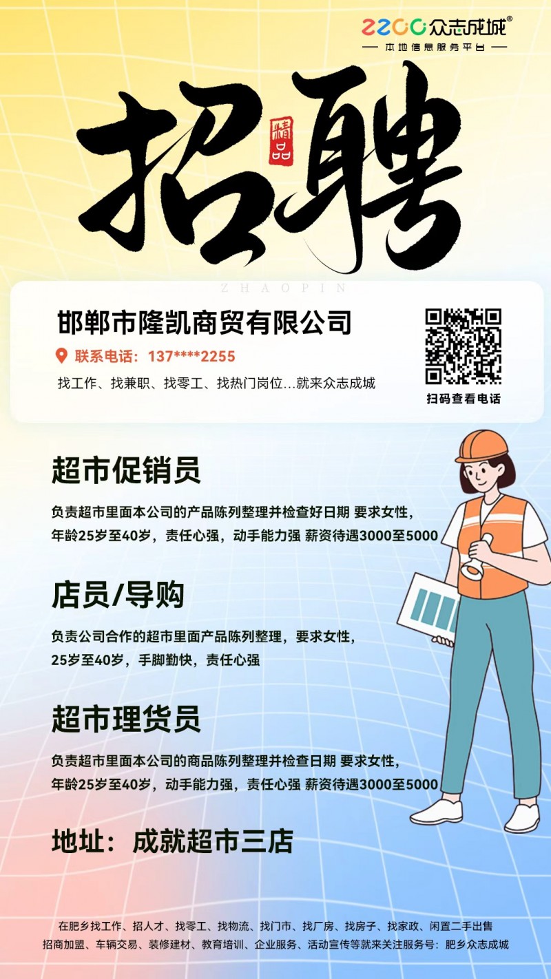 负责公司合作的超市里面产品陈列整理,要求女性,25岁至40岁,手脚勤快,责任心强地址:成就超市三店