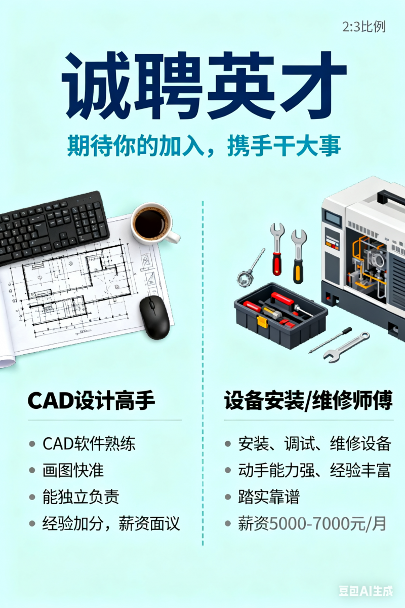 诚聘英才!虚位以待! 职位一:CAD设计高手 我们需要一位能独立搞定图纸的你! ·核心要求:CAD软件玩得转,画图又快又准,能独立负责。 ·如果你有相关经验,那绝对是加分项! ·薪资我们当面聊,只要你有能力,待遇绝对让你满意! 期待你的加入,让我们一起携手干大事! 地址:肥乡区邯郸市智达机械科技有限公司(邯馆公路南)